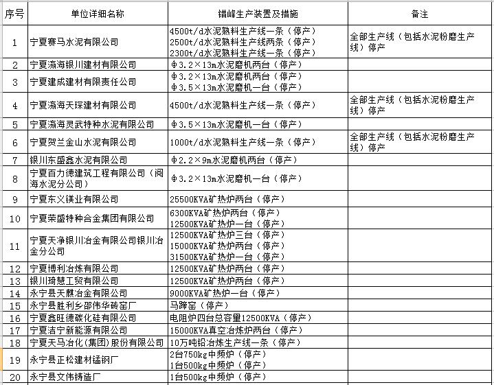 銀川市錯峰生產企業名單