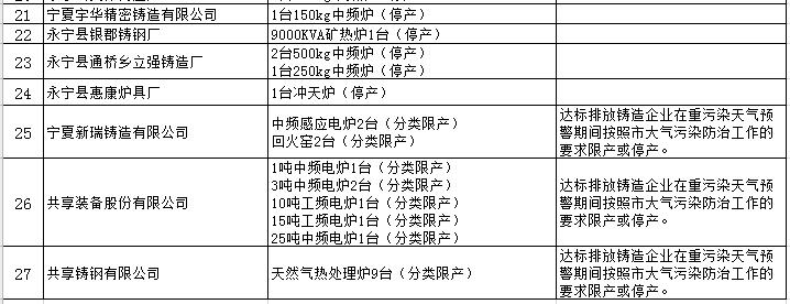 寧夏銀川市公布:2017-2017年度錯峰生產企業名單