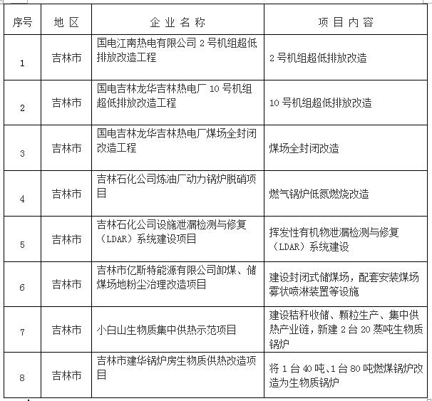 吉林市2017年工業大氣污染防治項目清單