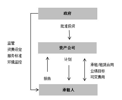 在租賃合同模式下,社會資本負責提供全部服務,并承擔滿足有關質量和服務標準的義務。除了新的投資和重置投資出政府負責外,運營商提供服務并自負費用和風險。租賃合同的期限一般是10年,續(xù)期可長達20年。服務的提供者由政府變更為社會資本,運營和維護的財務風險全部由社會資本運營商承擔,特別是運營商承擔虧損及消費者的未償債務。