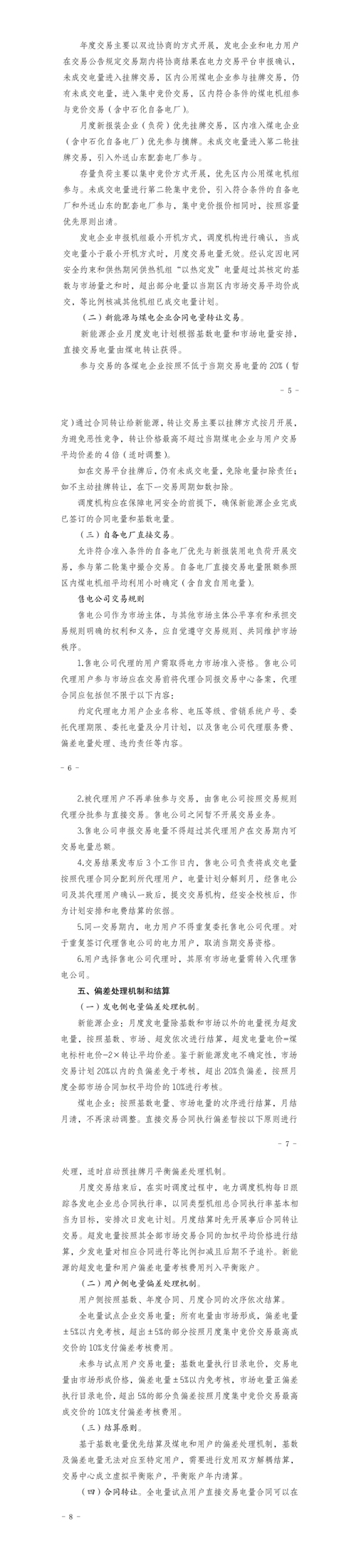 煤電企業:超發電量按照其全部市場交易合同的加權平均價格進行結算,少發電量對相應合同進行等比例扣減且后期不予追補。