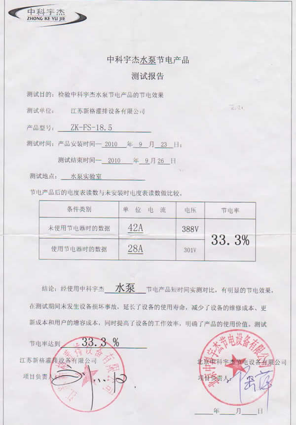 經過嚴格的測試和同期的用電對比,節能效率達到33.3%,節能效率超出了技術論證的結果。中科宇杰的技術實力得到權威專家的認同。
