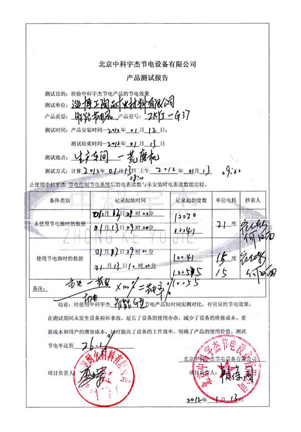 經(jīng)過我們公司工程師的分析,有較大的節(jié)電空間,經(jīng)測試安裝,幾臺設(shè)備的節(jié)電效果分別達(dá)到21.7%、25.9%、26.1%和40%。投資回報期1.5年。