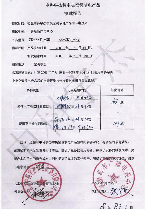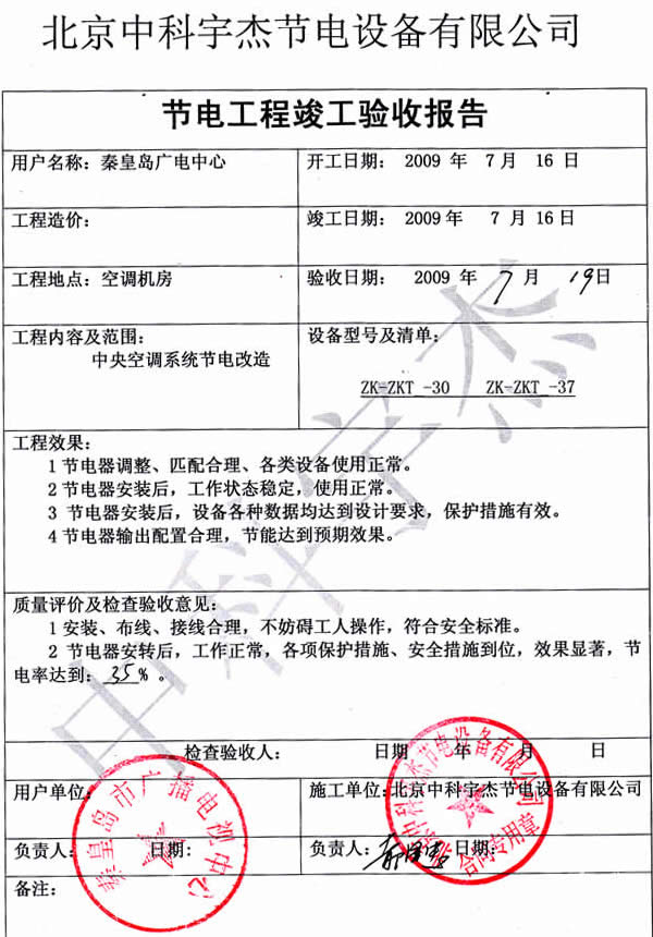 安裝調試驗收,節能效率達到35%,節能效果非常明顯,投資回報期不到兩年,為秦皇島市廣播電視局得到了很好的經濟效益和社會效益。